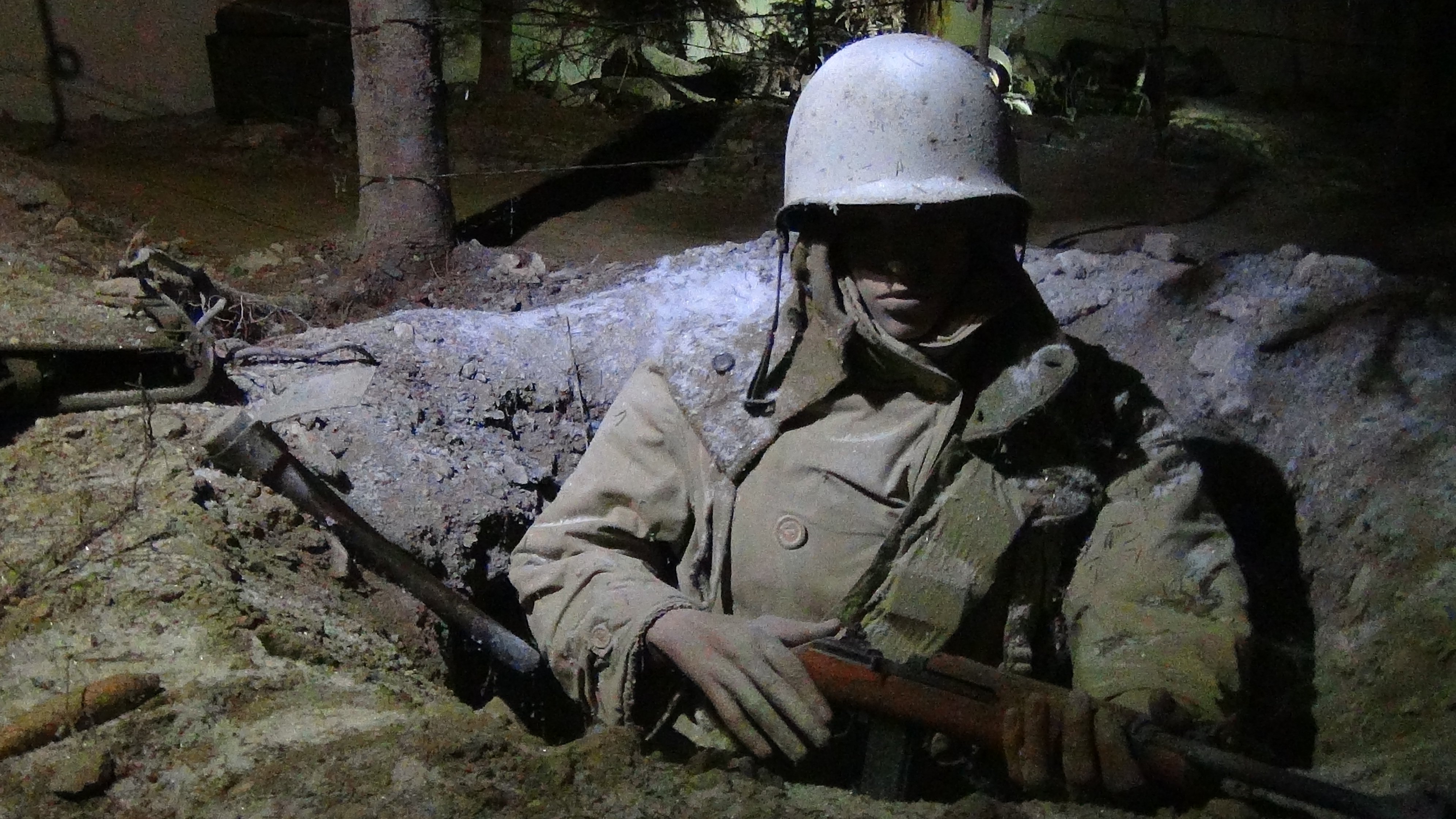 Besides the modern look in some of the museums out there, this museum has a lot of wooden structures. It adds so much more value to it. But the best has yet to come! In the museum you will see a road-sign saying “battlefield”. As you follow the sign you will enter a barn with a staircase leading down to the battlefields. My jaw dropped and my eyes were wide open. I had never seen such a beautiful reconstruction of battlefields of Battle of the Bulge! They really did a great job in showing you how the 101st Airborne was dug in around bastogne.
